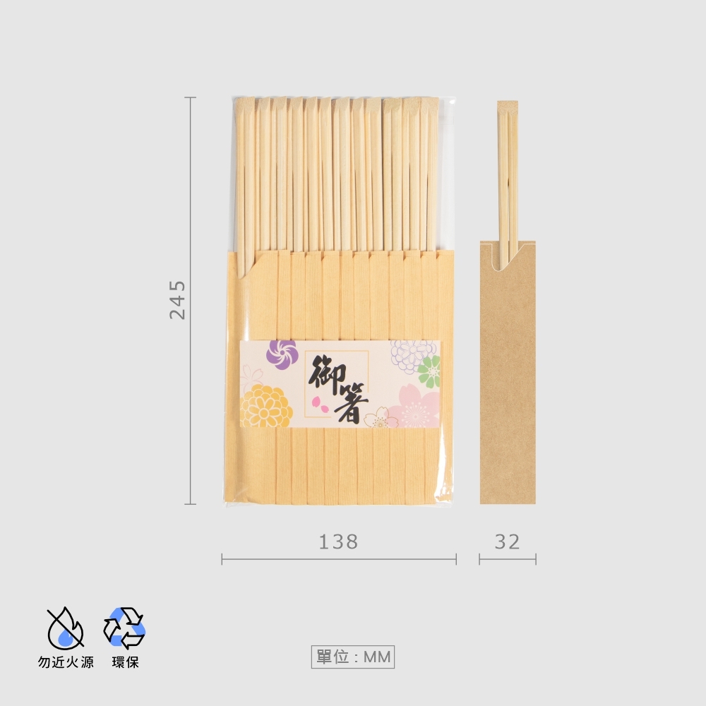 尺寸:138x245xH6mm(23cm天削筷+15cm壓紋筷套)