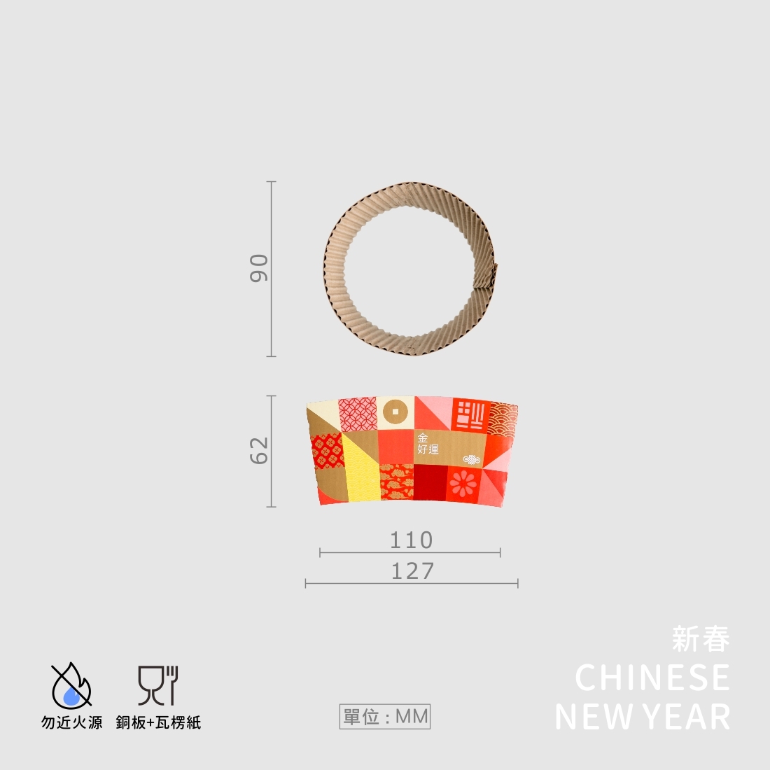 品名:冷熱共用瓦楞杯套 90口徑 新春款