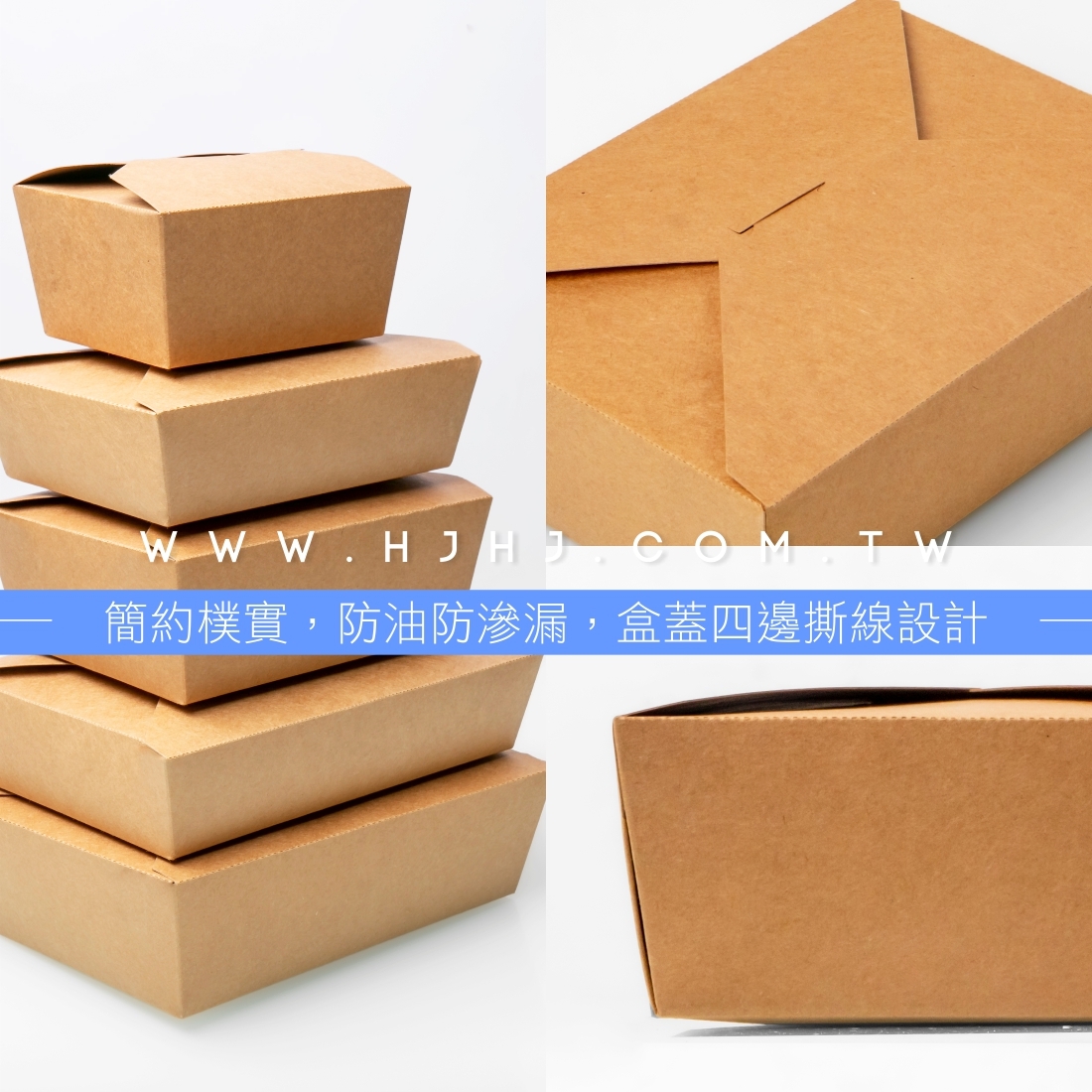 簡約樸實的牛皮紙方形餐盒,融入各式餐點,更能凸顯食物的美味。