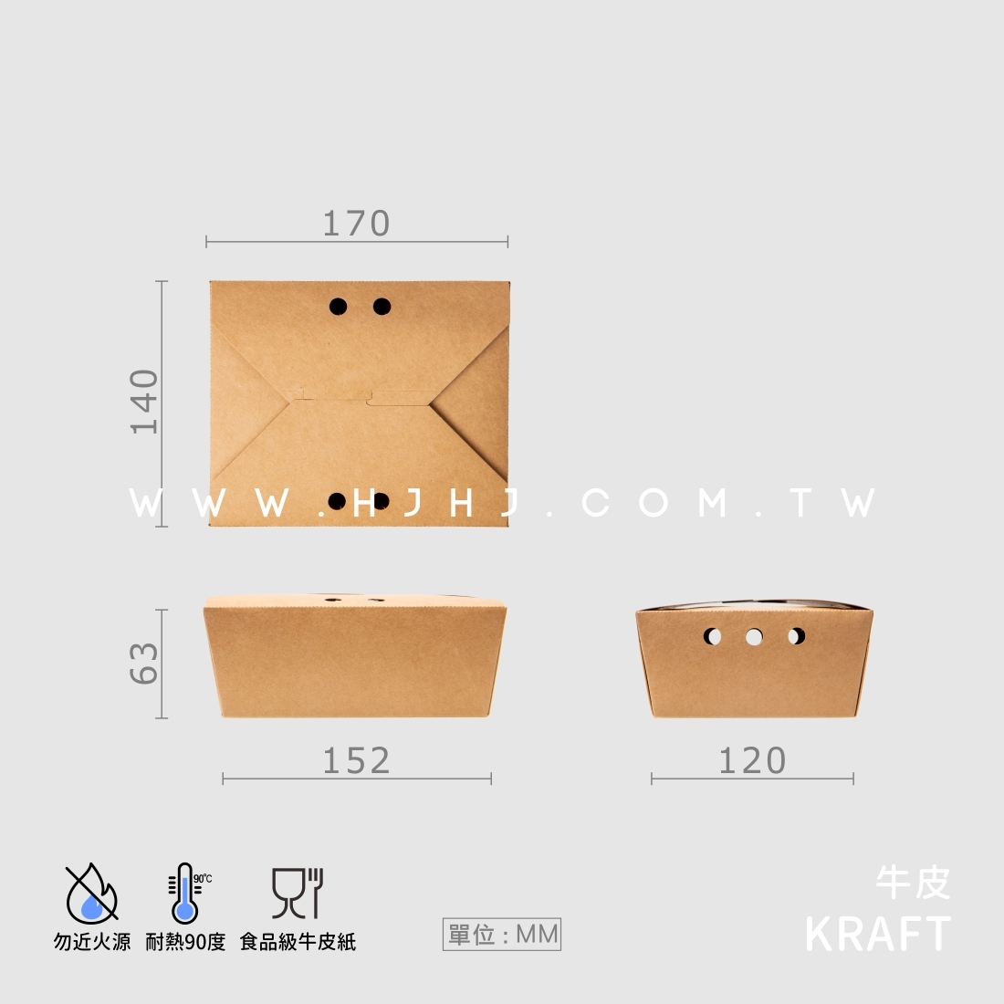 品名:牛皮紙開洞方形餐盒 8號