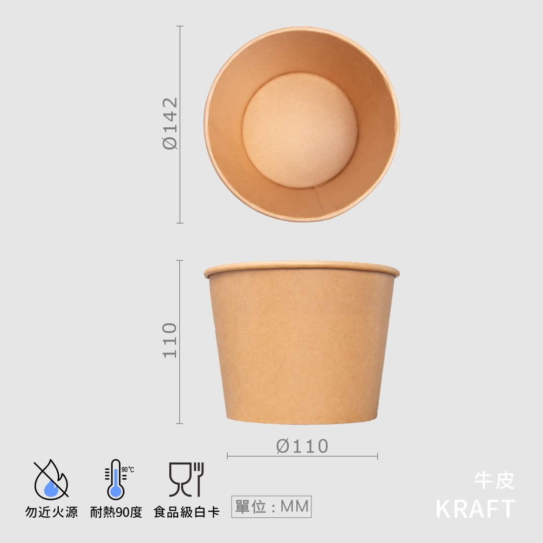 雙面淋膜冷熱共用,輕鬆堆疊不占空間,素雅牛皮紙色呈現自然質感,提升品牌與餐點的質感形象。