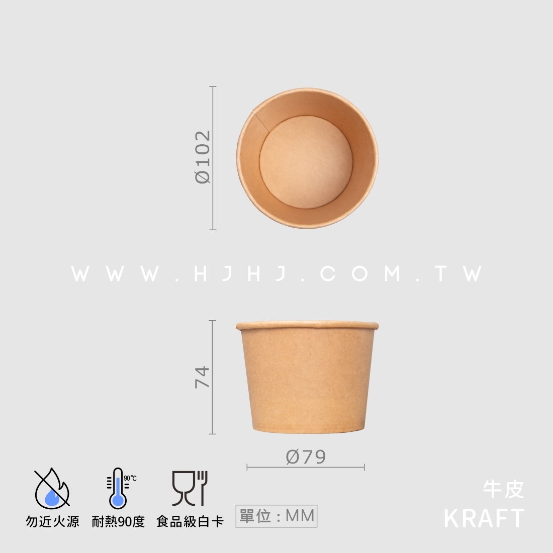 雙面淋膜冷熱共用,輕鬆堆疊不占空間,素雅牛皮紙色呈現自然質感,提升品牌與餐點的質感形象。