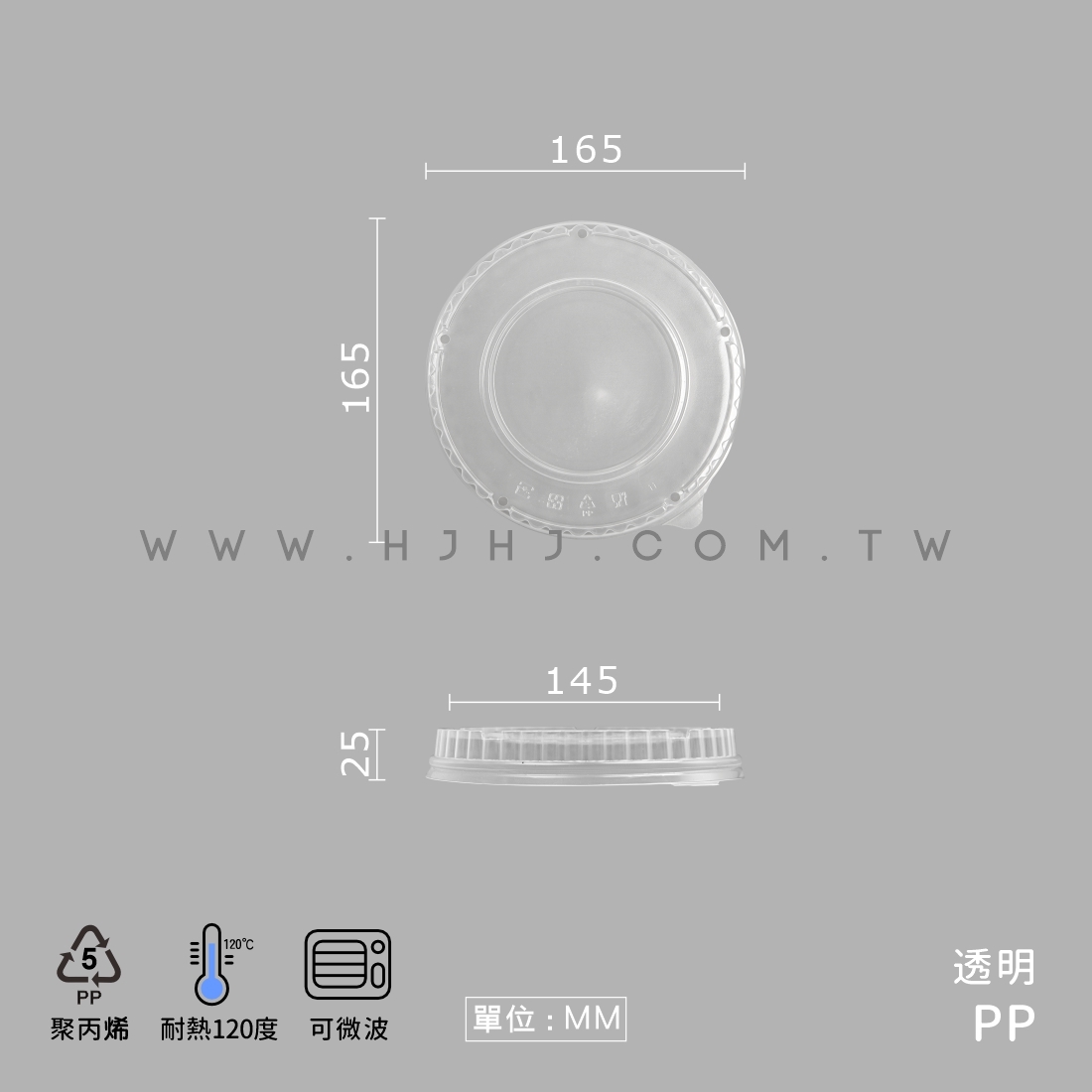 PP-C165T-165凸蓋-U|PP材質耐高溫,可回收,輕鬆好蓋又實用。