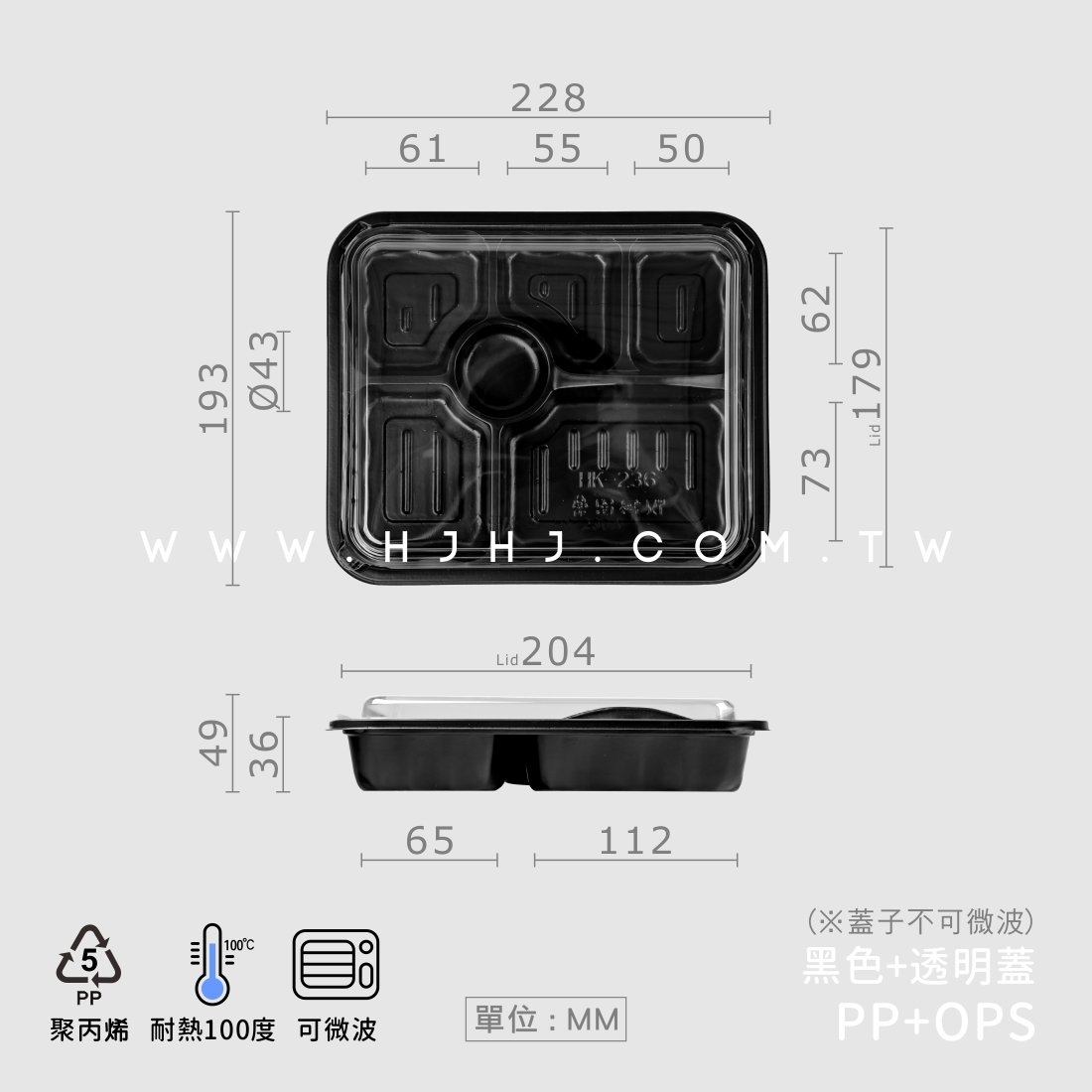 描述:【HK236】耐熱0度~100度,盒身可冷藏微波,內崁式盒蓋設計