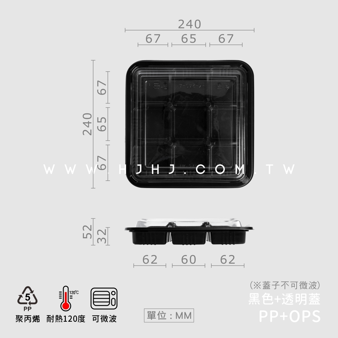尺寸:底- L240xW240xH42mm、蓋- L220xW220xH25mm (含蓋H50mm)
