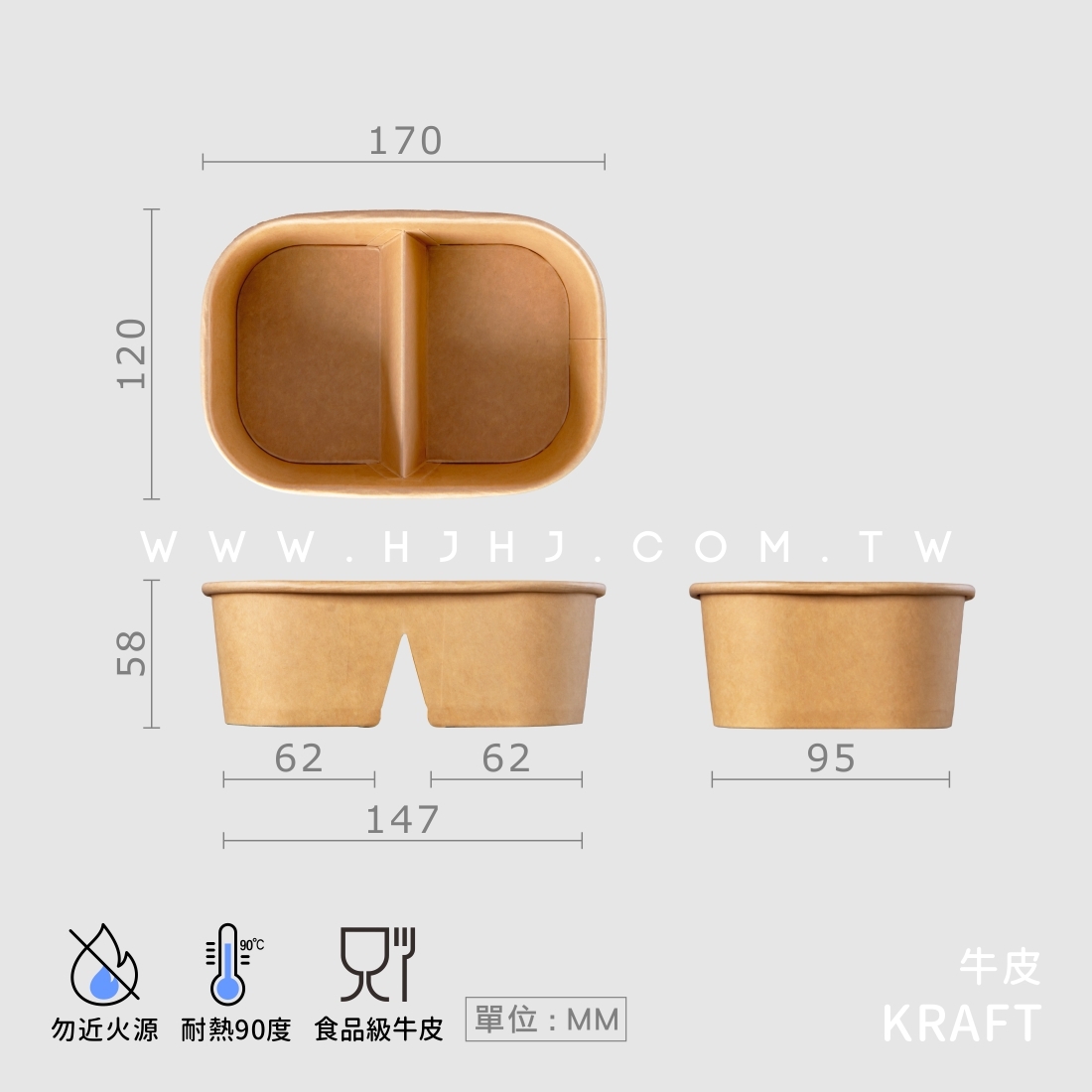 品名:牛皮紙長方形碗 二分格 700ml 8號