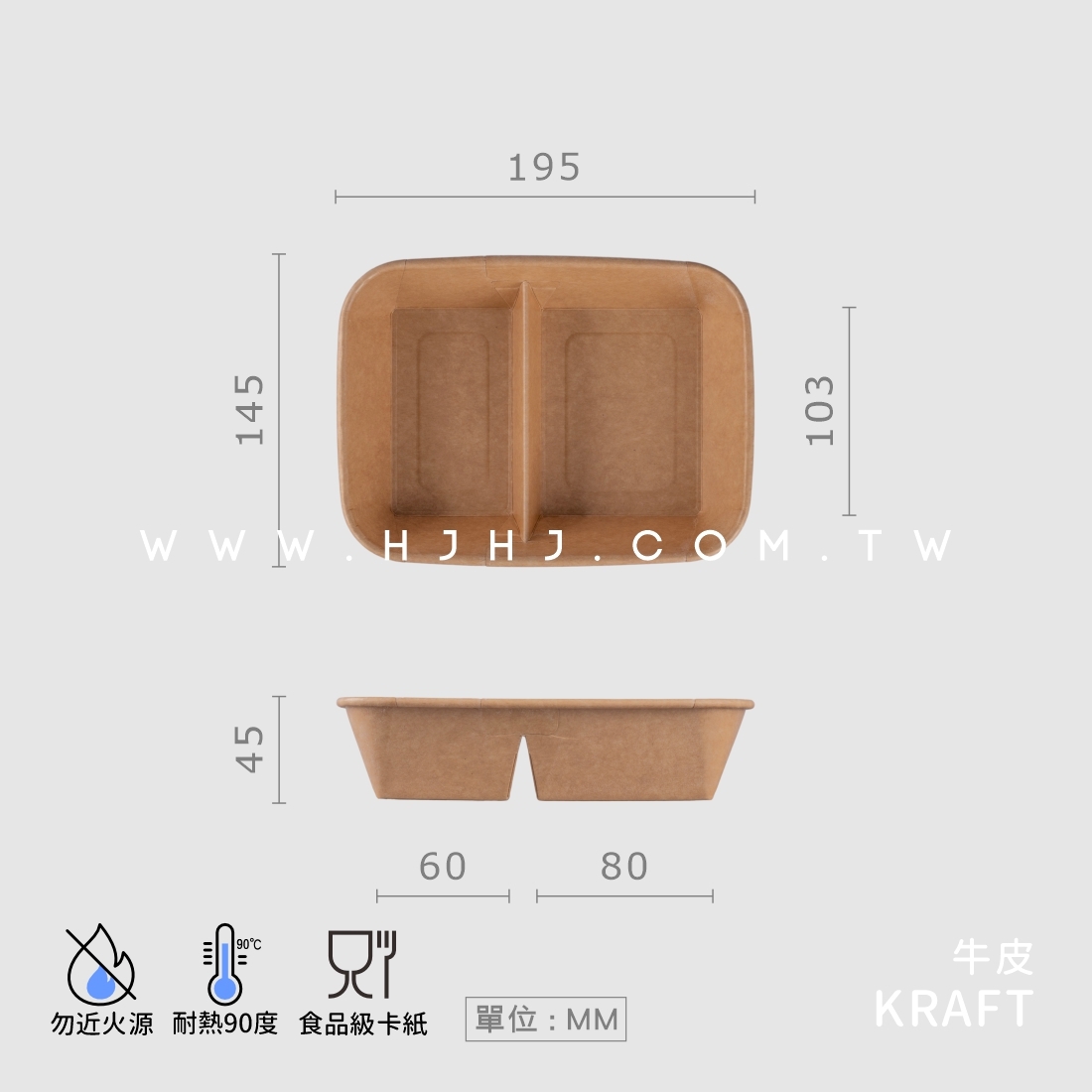 品名:捲邊紙餐盒-牛皮 二分格 800ml