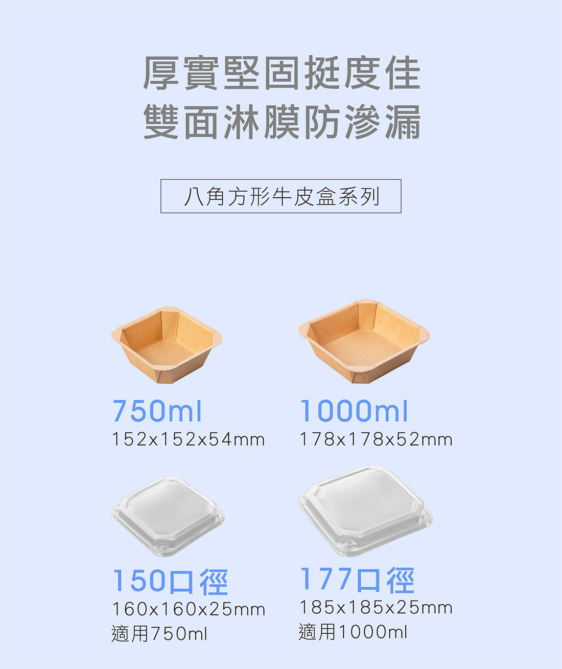 方形八角耐壓不易軟塌,厚實堅固挺度更加倍,食品級牛皮安心安全,雙面淋膜防水防油防滲漏,搭配OPS蓋不怕手抖不易撒出