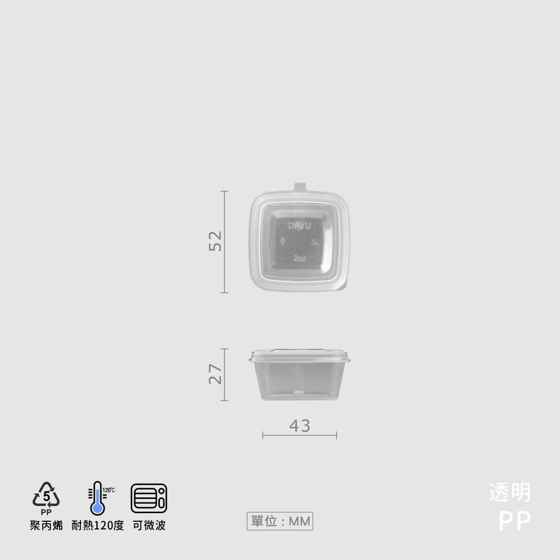 PP柔韌結實耐用,耐高溫安心微波,密封佳滴水不漏,輕巧方便外帶實用,盛裝醬料安心安全。