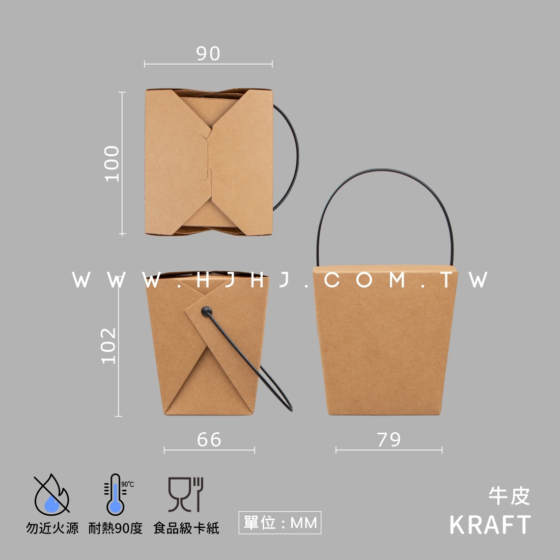 牛皮紙質最純粹最直接,自扣式盒蓋設計免用橡皮筋,有效提高打包速度,方便攜帶提著就走減少使用袋子 美味的享受就是這麼簡單。