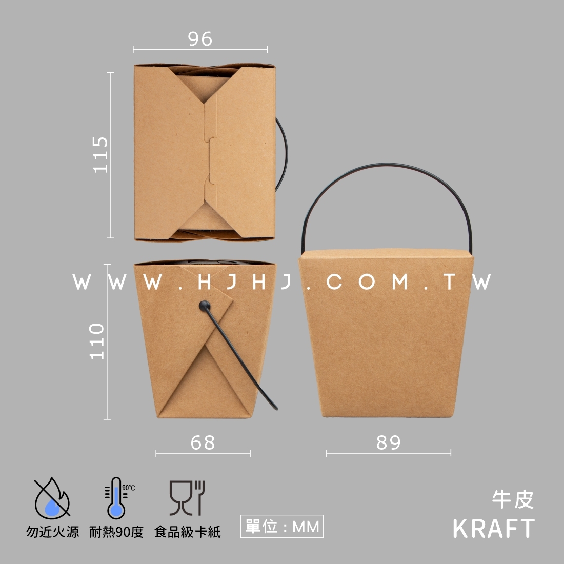牛皮紙質最純粹最直接,自扣式盒蓋設計免用橡皮筋,有效提高打包速度,方便攜帶提著就走減少使用袋子 美味的享受就是這麼簡單。