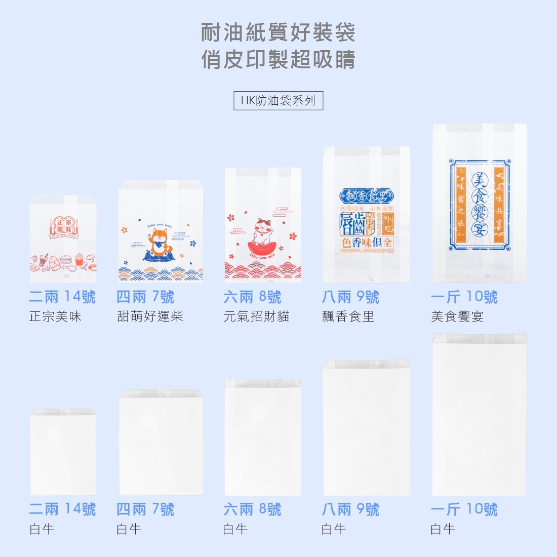 品名:防油袋HK 白牛 二兩 14號
