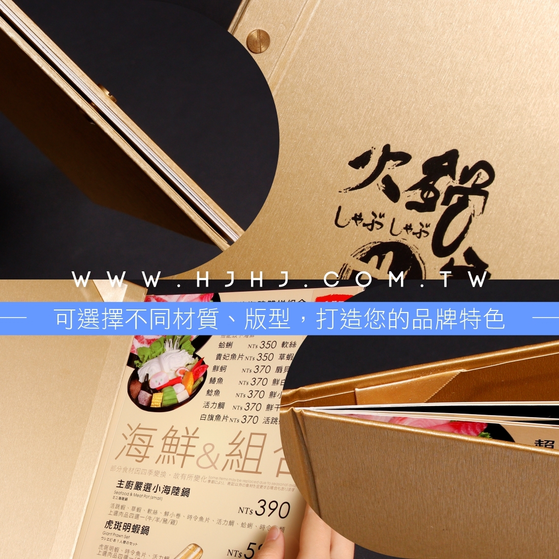 款式:精裝鉚釘式菜單-外鉚釘-封面底兩片式