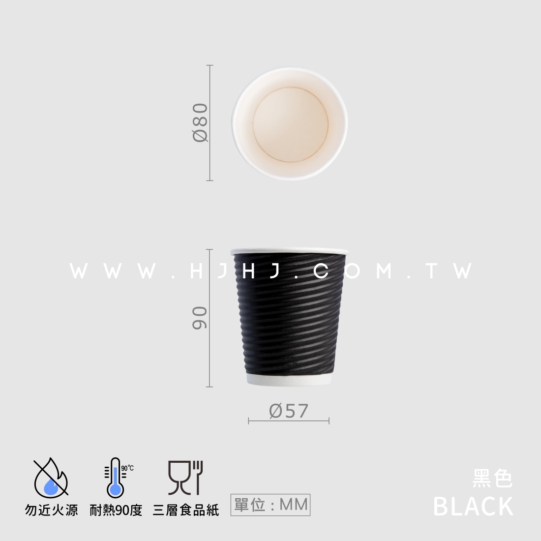 品名:公版瓦楞橫紋杯8oz 黑色