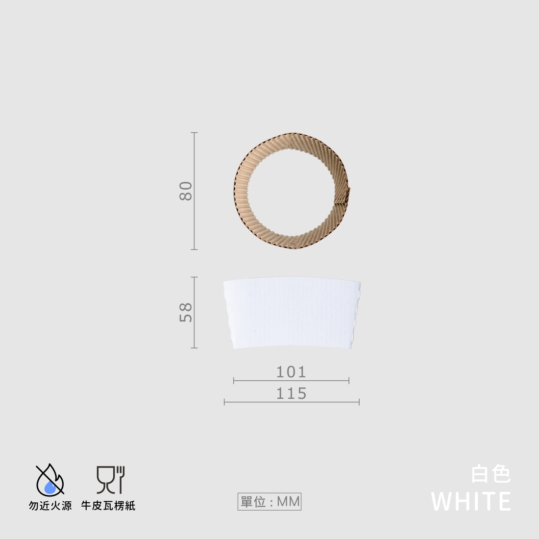 品名:瓦楞杯套 80口徑 白牛