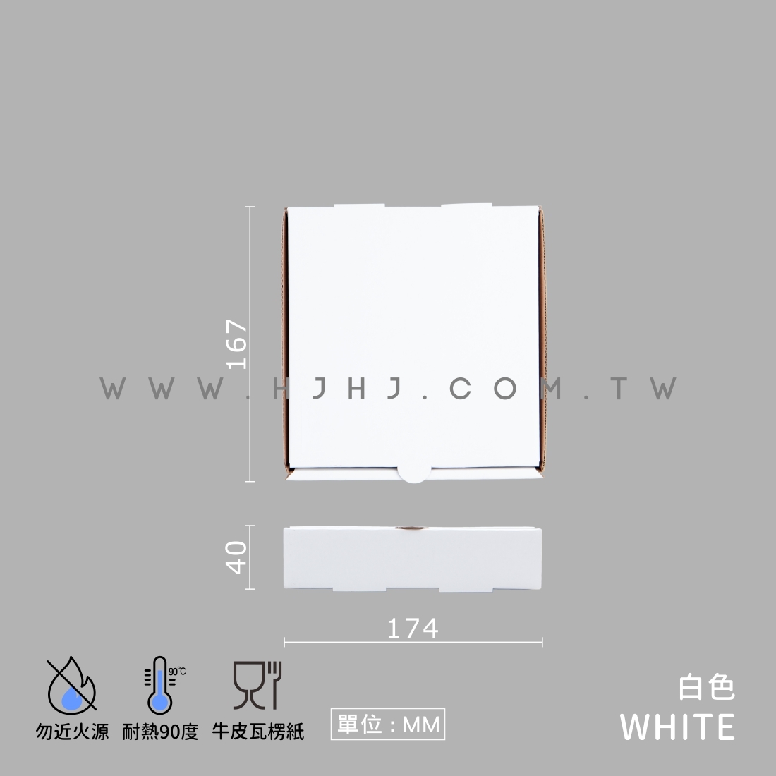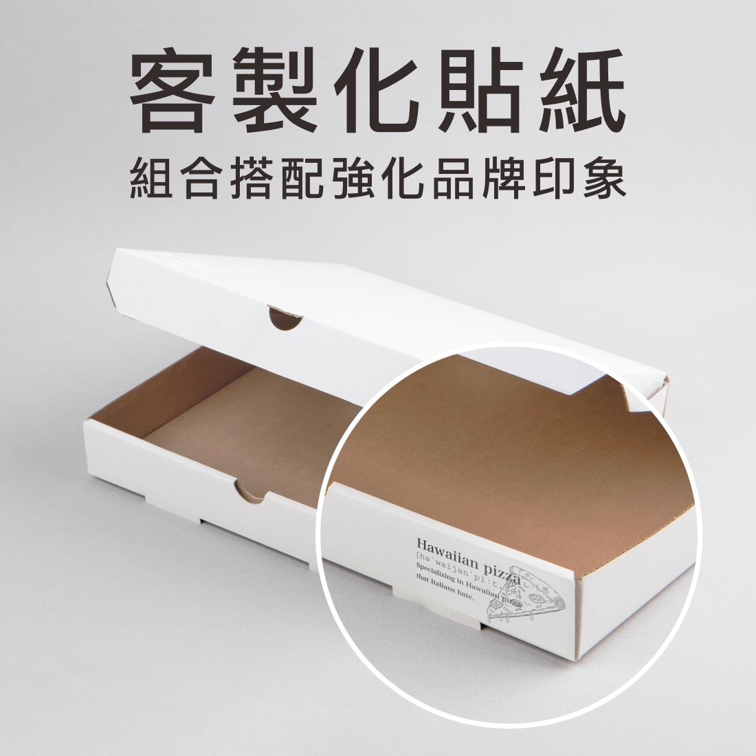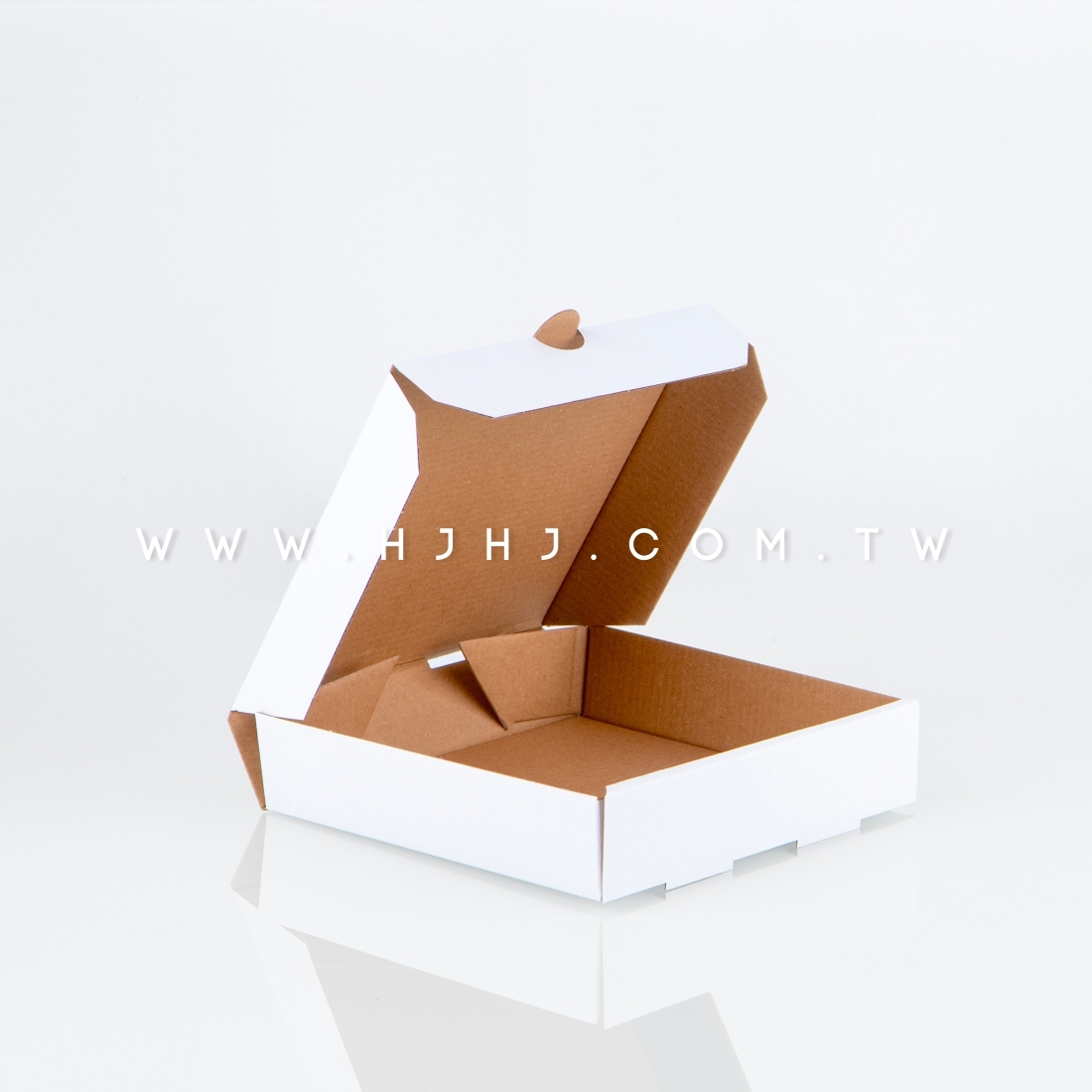 比薩盒外表純白無印刷和堅固瓦楞紙板,可用於存放披薩和烘焙食品! 如果您的餐廳需要有效的方式來運輸食物,請務必使用這個盒子喔。