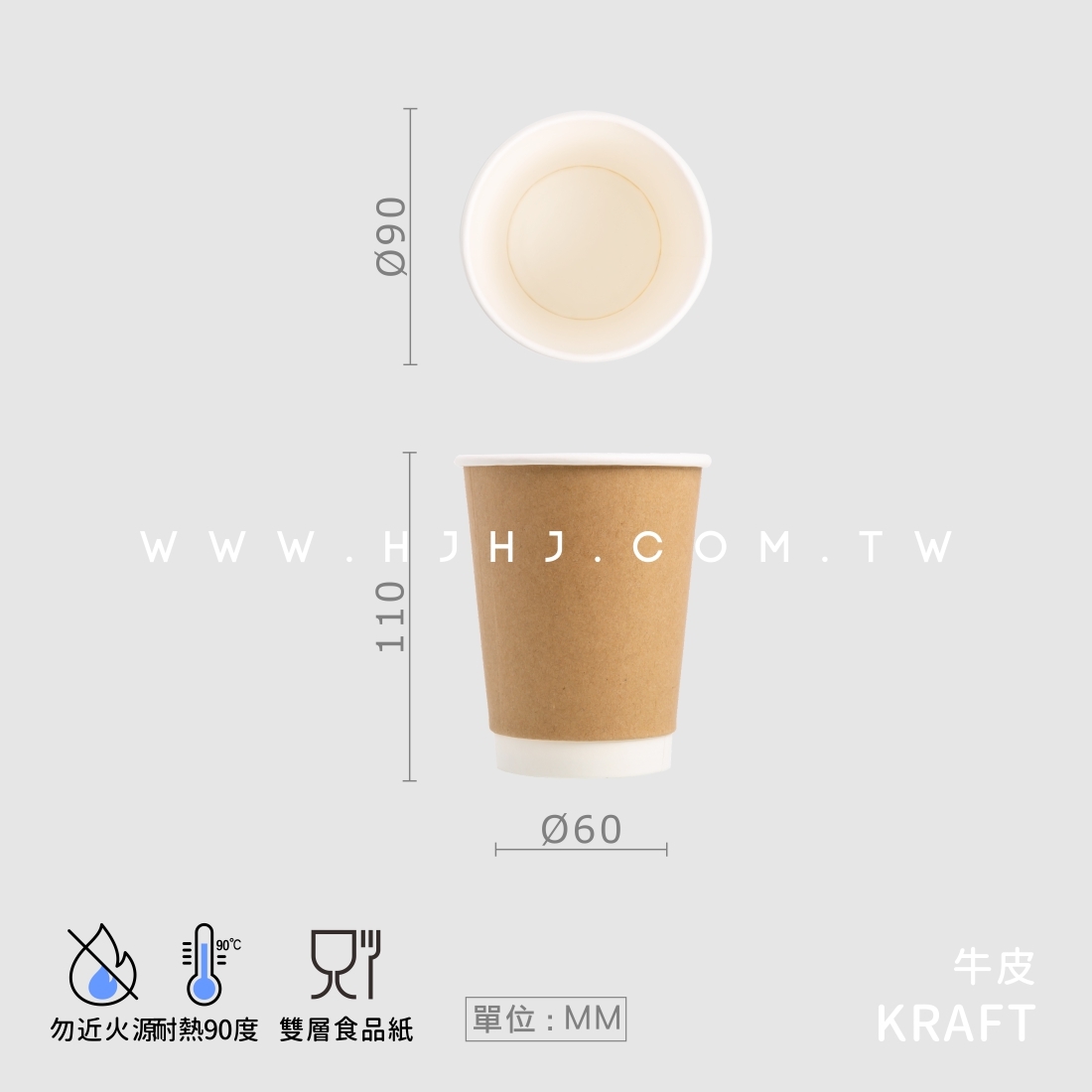 描述:耐熱5度~90度,表面牛皮粗糙面,適用熱飲