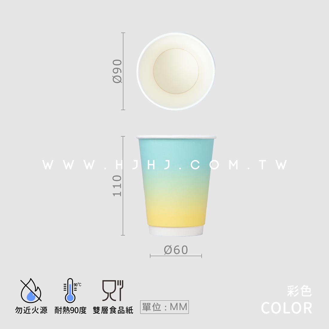 品名:冷熱共用雙層中空杯12oz 漸層繽紛