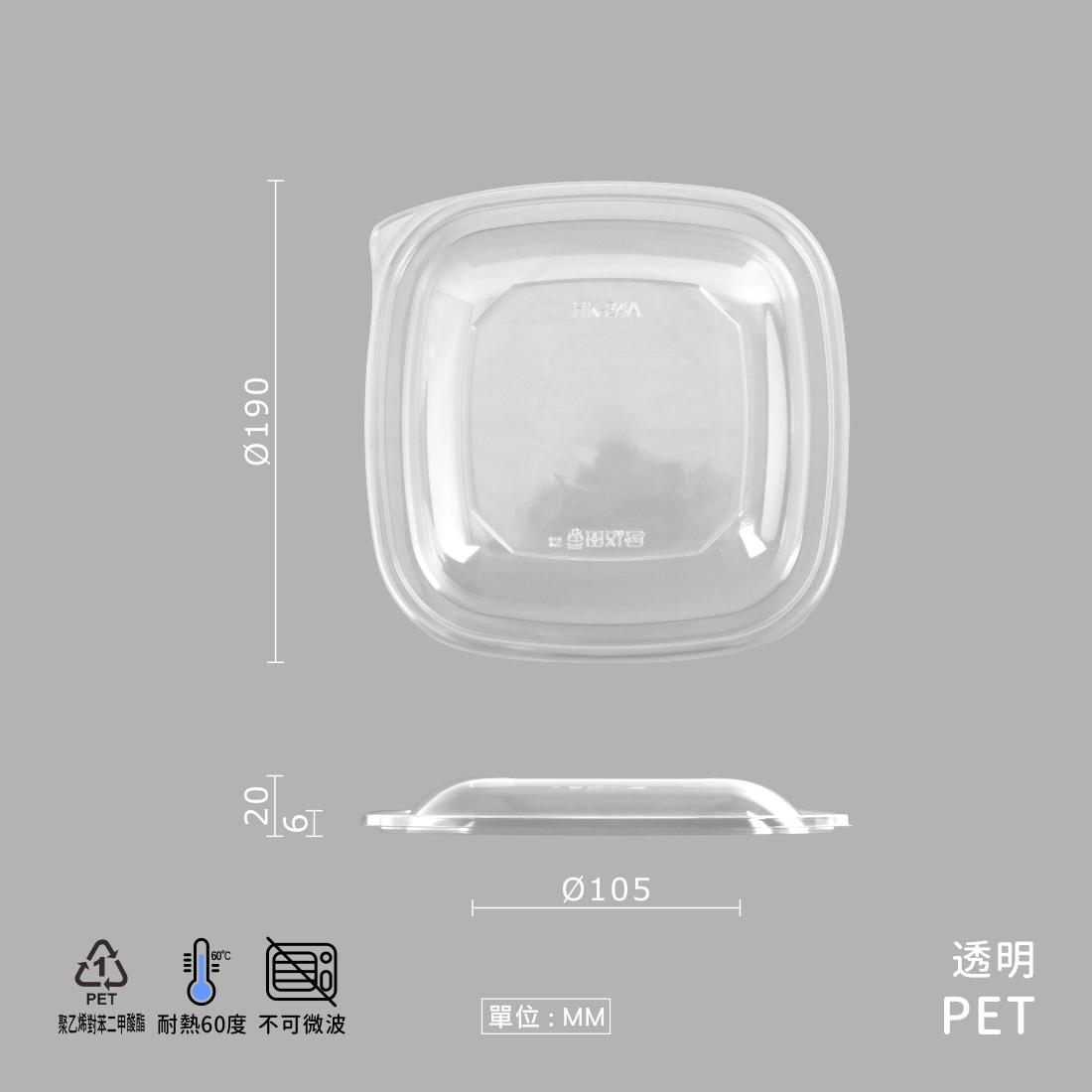 品名:PET透明正方形沙拉盒凸蓋-HK 190口徑