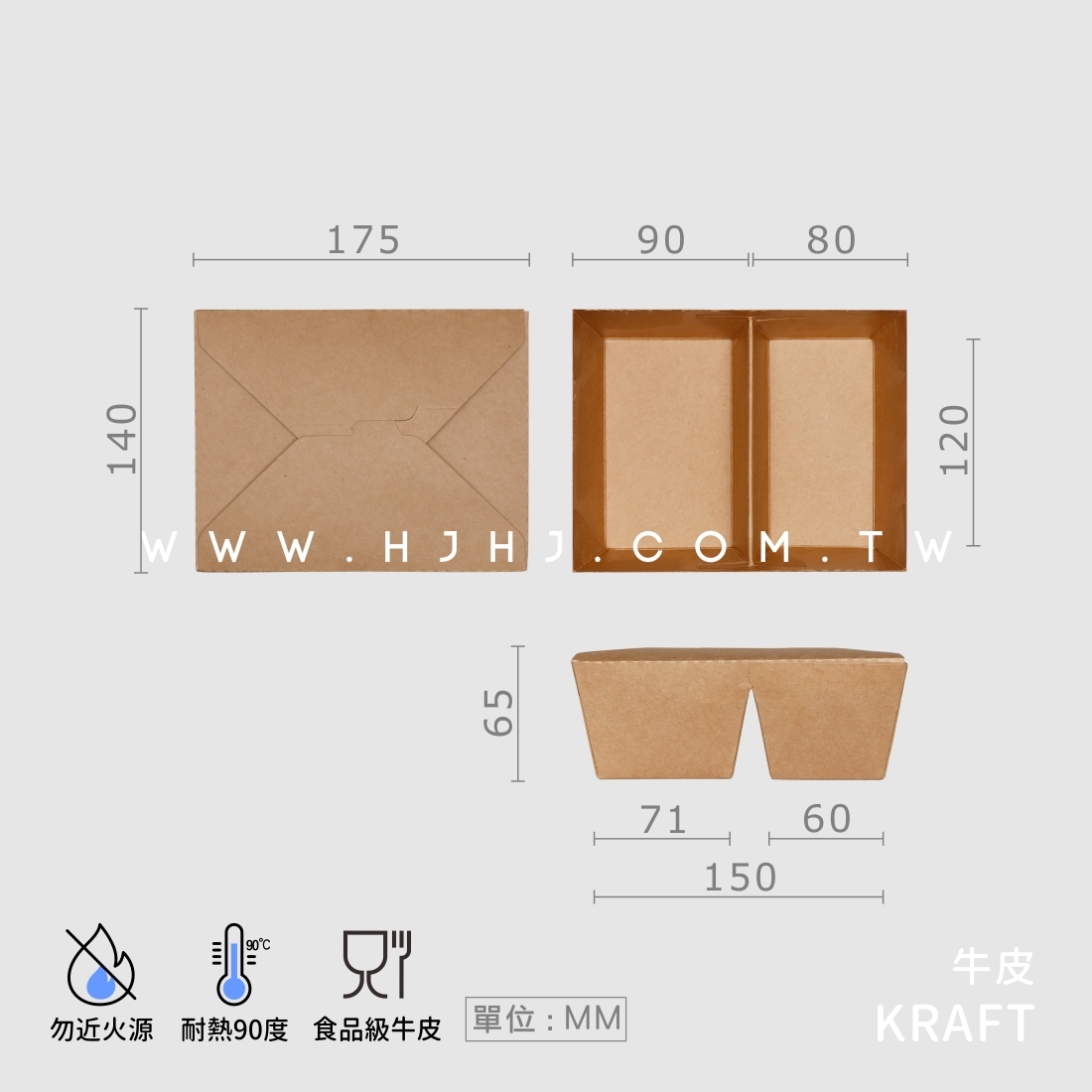品名:牛皮紙方形餐盒 二分格 1400ml 2號