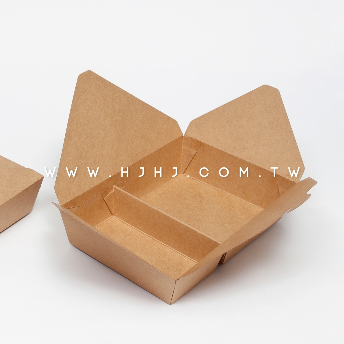 簡約樸實的牛皮紙方形餐盒,融入各式餐點,更能凸顯食物的美味內襯分隔設計,乾溼分離,讓味道不混淆,品嘗美食更美味。