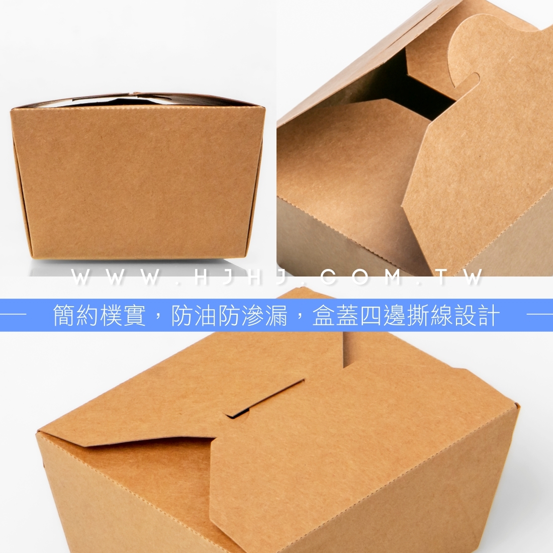 簡約樸實的牛皮紙方形餐盒,融入各式餐點,更能凸顯食物的美味。