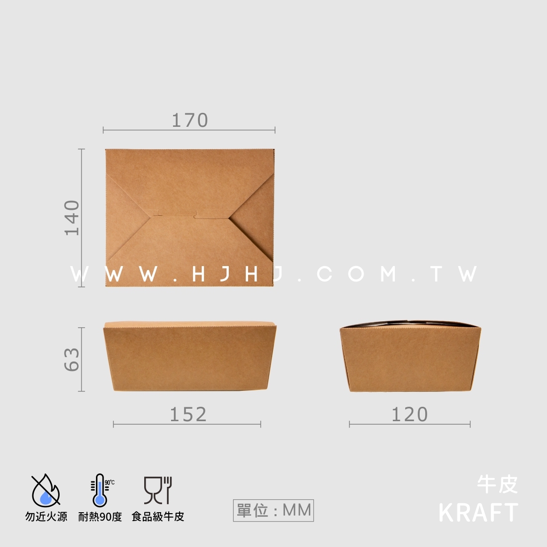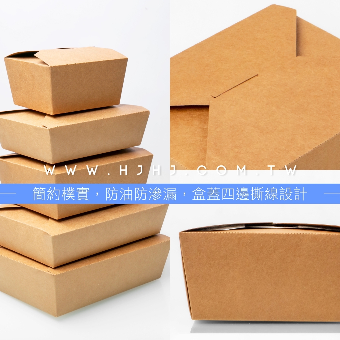 簡約樸實的牛皮紙方形餐盒,融入各式餐點,更能凸顯食物的美味。