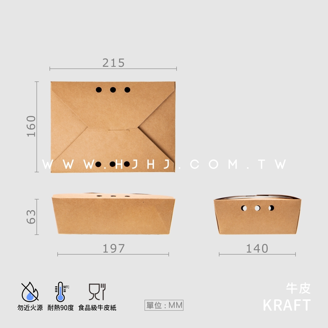 品名:牛皮紙開洞方形餐盒 3號