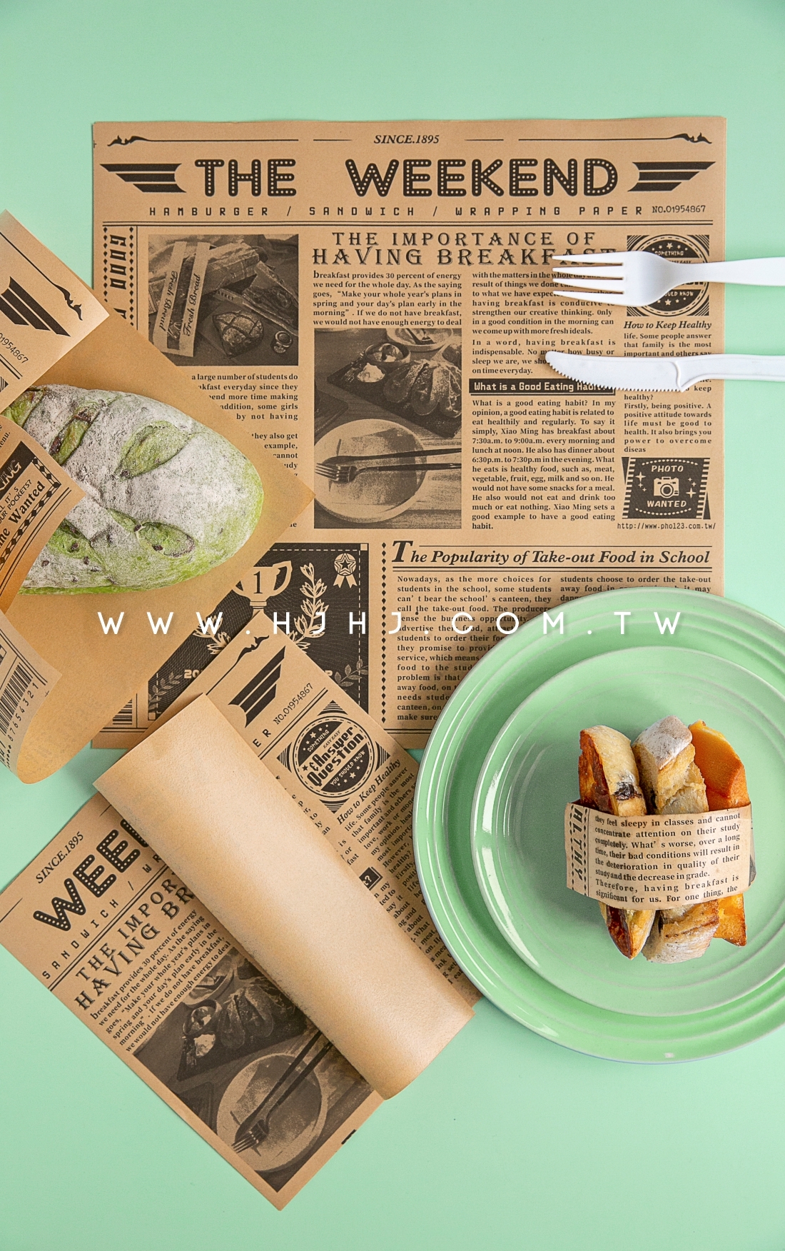 風格就是品牌的第一口印象 ~ 美式郵報風格懷舊復古,讓每一道料理彷彿出自日報頭條。不論是手作三明治、貝果麵包或是繽紛糖果餅乾,防油防水淋膜設計,輕鬆包裹,展現輕食的精緻格調。