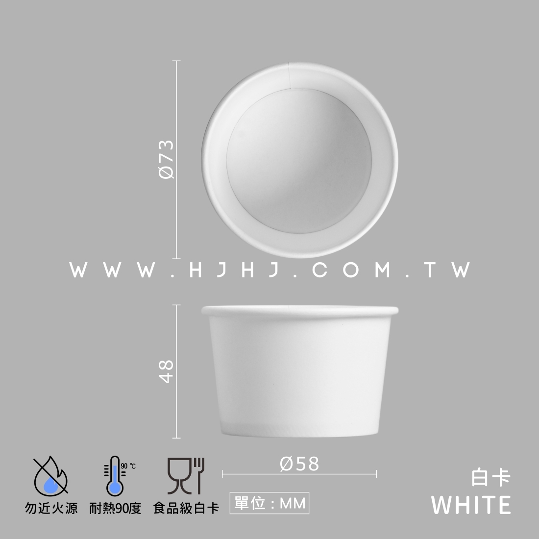 材質:食品級白卡+雙面PE淋膜