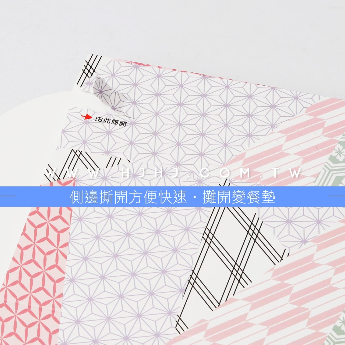 使用封套大大降低外帶意外開蓋,側邊撕開即可開蓋食用,將餐盒套攤開即為餐墊。