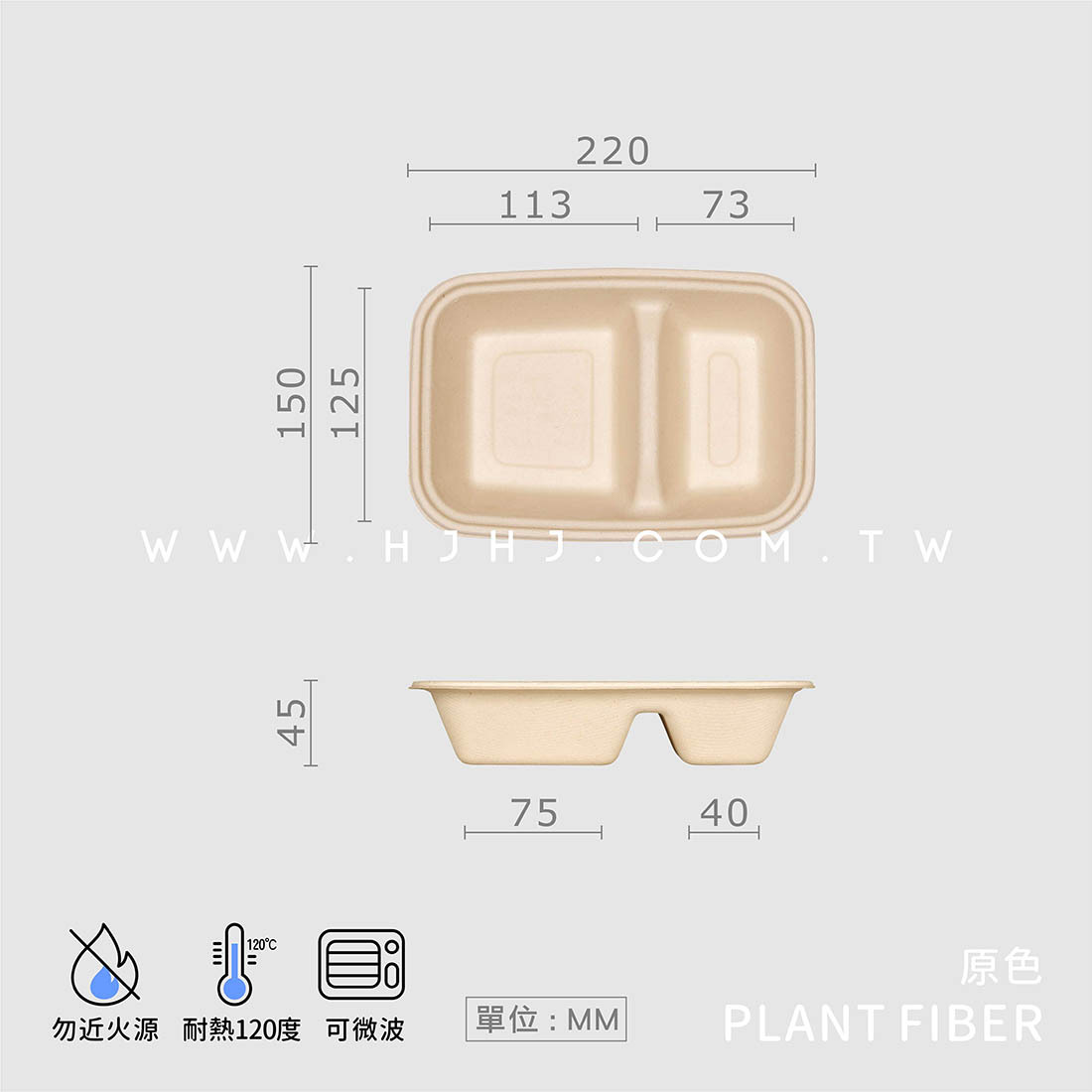 描述:二分格,耐熱5度~120度,防油防水無淋膜,可冷藏微波【因使用天然植物纖維製成,每批顏色不同屬正常現象】