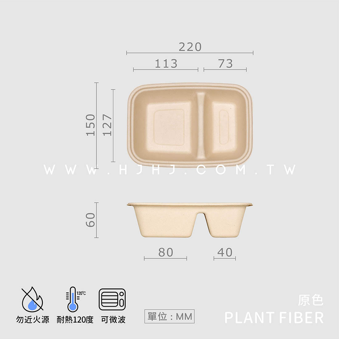 描述:二分格,耐熱5度~120度,防油防水無淋膜,可冷藏微波【因使用天然植物纖維製成,每批顏色不同屬正常現象】
