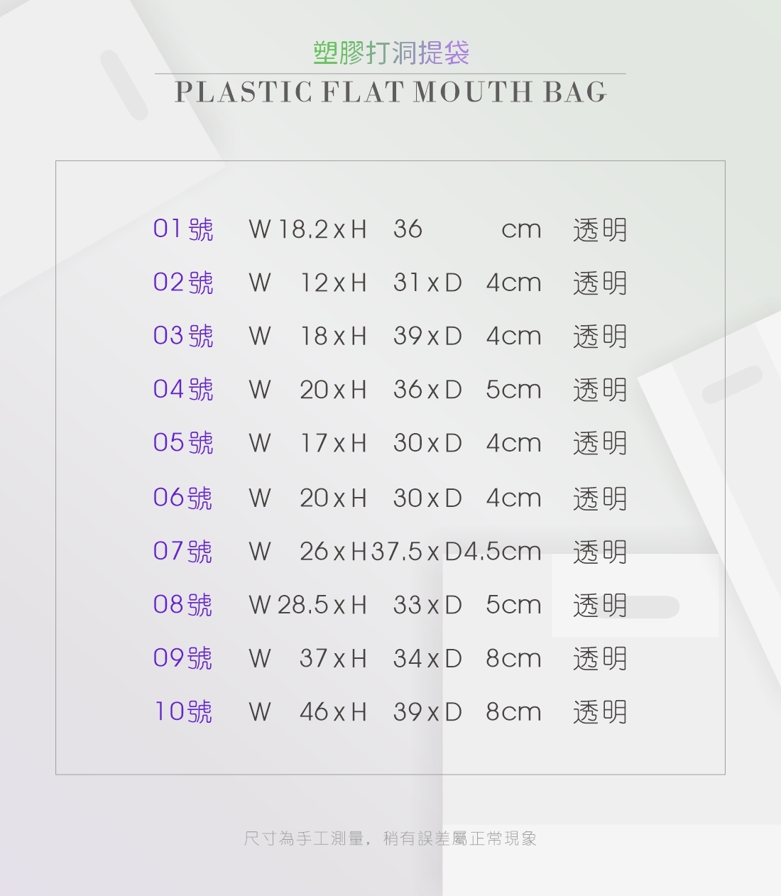 品名:塑膠打洞袋-透明 9號