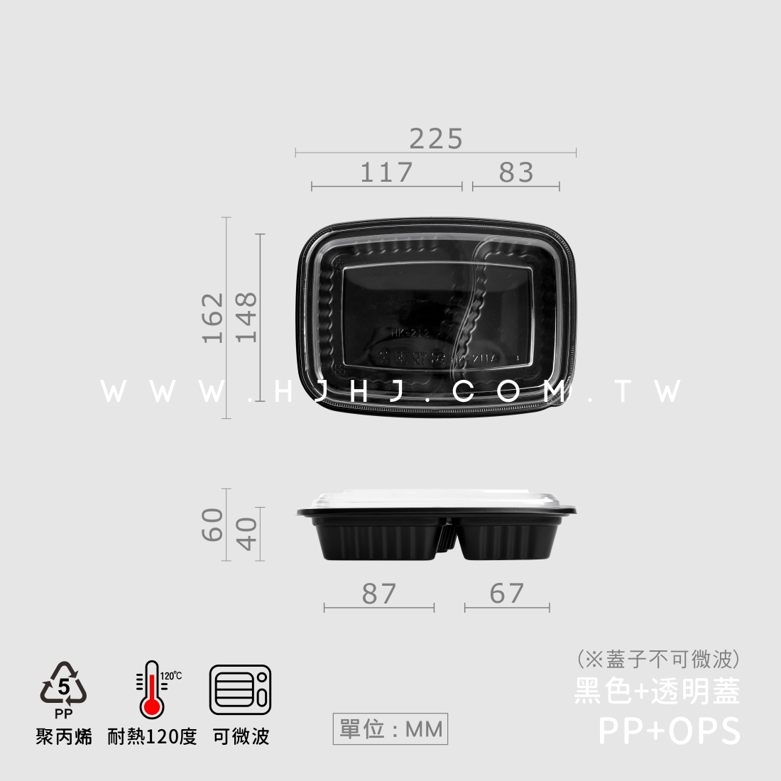 品名:塑膠長方型便當盒 二分格 700ml 19號