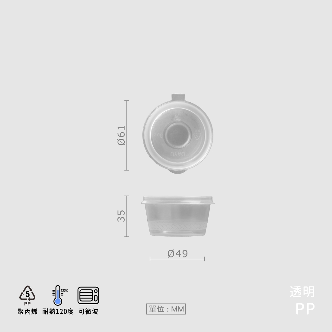 PP柔韌結實耐用,耐高溫安心微波,密封佳滴水不漏,輕巧方便外帶實用,盛裝醬料安心安全。