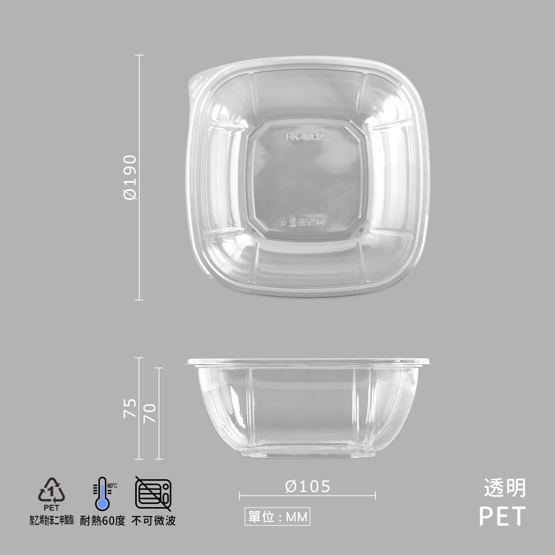 搭配:蓋 - PET透明正方形沙拉盒凸蓋 190口徑