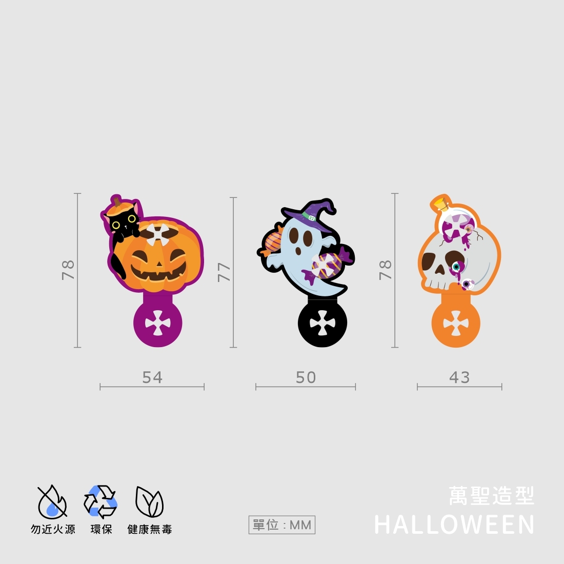 尺寸:南瓜貓78x53mm/鬼幽靈76x50mm/骷髏頭78x43mm