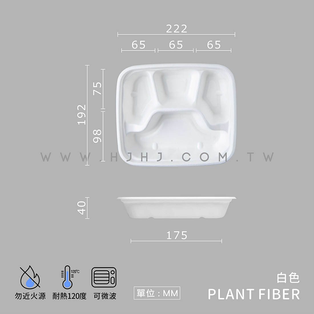 品名:植纖餐盒 白色 37號 四分格
