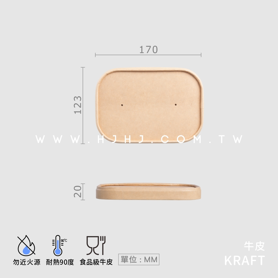 品名:牛皮紙長方形碗蓋 170口徑